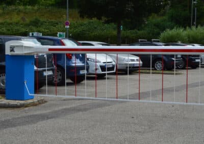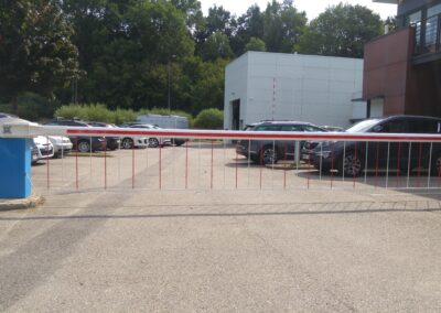 Procure un aspect dissuasif et résiste aux chocs. La grille est articulée et s'efface contre la lisse lors de l'ouverture de la barrière.